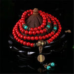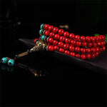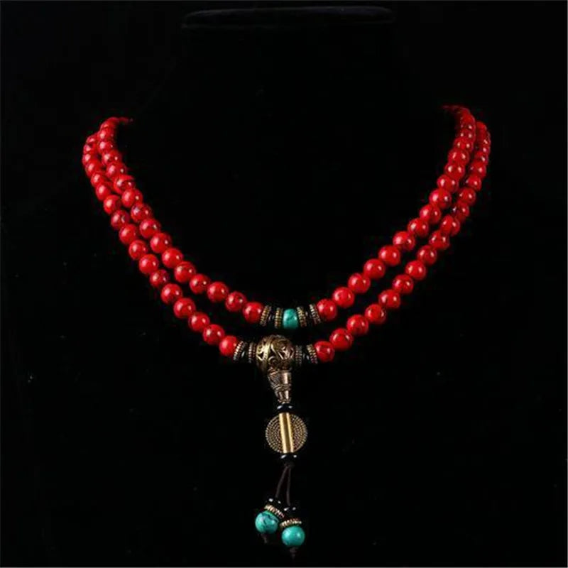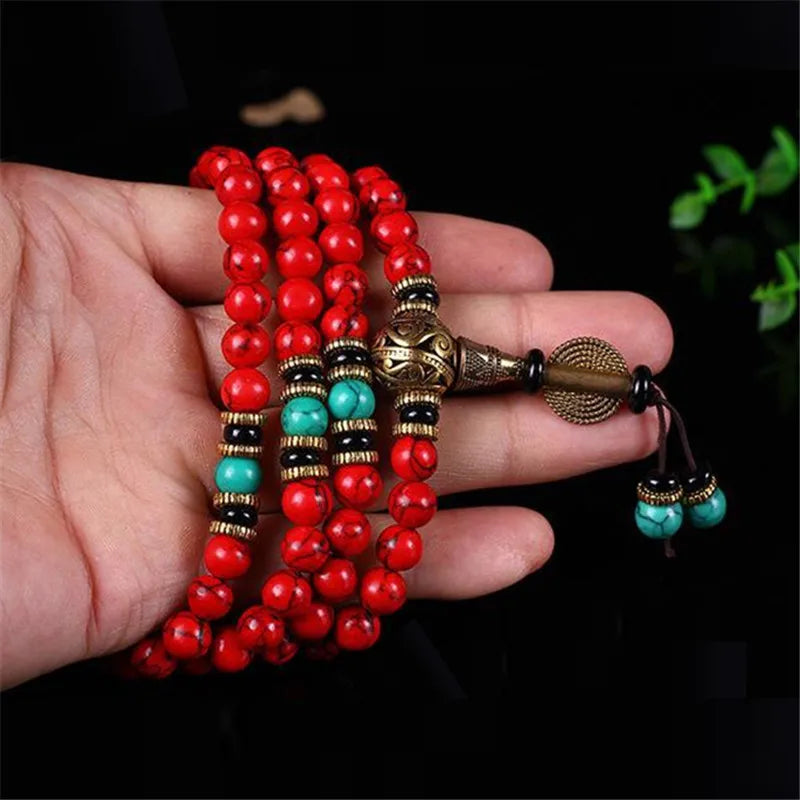 Mistgift 108 Red Turquoise Stone With Tassel & Hand Knotted Buddha Prayer Beads Meditation Mala Necklaces Bracelets