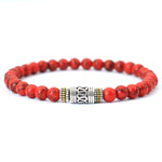 Mistgift 6mm Tibetan Buddhist Meditation Bracelet Respectively Made by Natural Red Turquoise, Tiger Eye, Malachite, Lava Stone, & Onyx