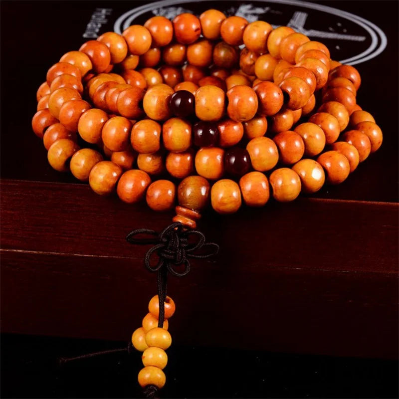 This magnificent mala is the Swiss Army knife of serenity. Loop it around your neck as a statement wood bead necklace that whispers "I have my life together" (even if you really don't). Wrap it around your wrist as a powerful meditation bracelet to keep the good vibes flowing all day long. Use it for its intended purpose: counting mantras during your meditation practice with its traditional 108 beads. Each bead is a chance to take a breath, focus your intention, and remind yourself that you are a glorious human being, capable of great calm and even greater coffee consumption. It’s a meaningful gift, a spiritual tool, and a fashion-forward accessory all rolled into one beautifully crafted strand.