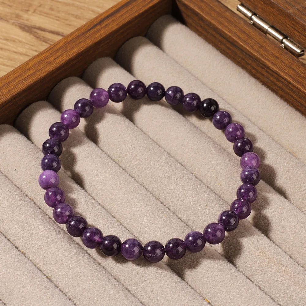 Embrace gentle, soothing energy with this delicate beaded bracelet featuring genuine amethyst stones. Each polished purple bead carries the crystal's calming and clarifying properties, making it both a stylish and meaningful accessory. Whether you’re looking to invite more creativity and peace into your day or simply want a touch of natural elegance, this bracelet makes a thoughtful gift—for yourself or someone in need of a little serenity.
